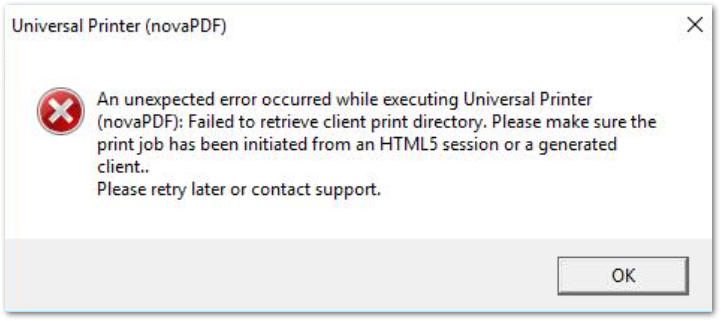De forma predeterminada, los trabajos de impresión de una sesión HTML5 se muestran dentro de una ventana emergente como antes de la versión 17.10.