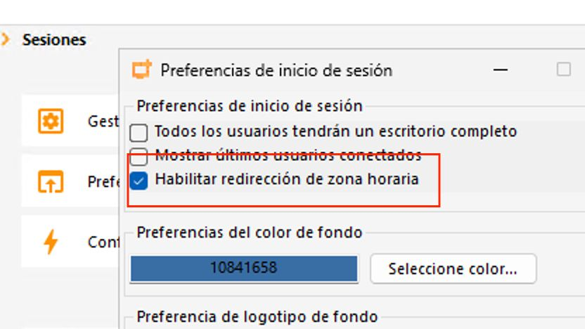 En algunos casos puede ser conveniente desactivar la redirección de zona horaria, para asegurar que todas las sesiones utilicen la misma referencia de tiempo del servidor.
